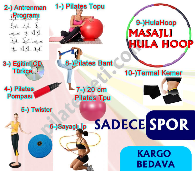 Setin Çalışma Programında pilates topunuz ile yapabileceğiniz farklı pilates egzersizleri sizin için hem mankenli(görsel ifade) hem de metin şeklinde(yazı ifadeyle) anlatılmıştır.