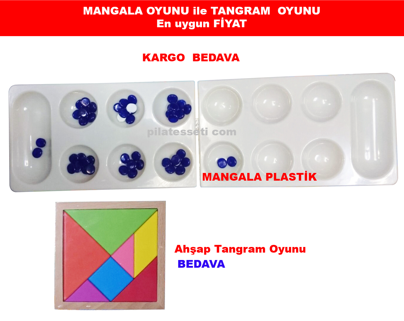 Mangala Oyununu Alana Ahşap Tangram Oyunu Tek pakette….